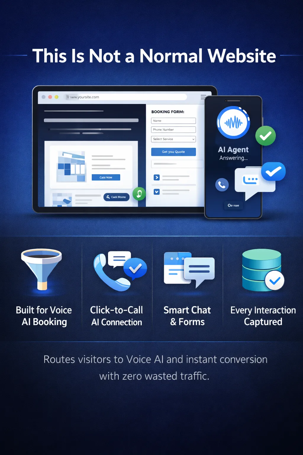 -Built to route visitors directly into Voice AI or instant booking